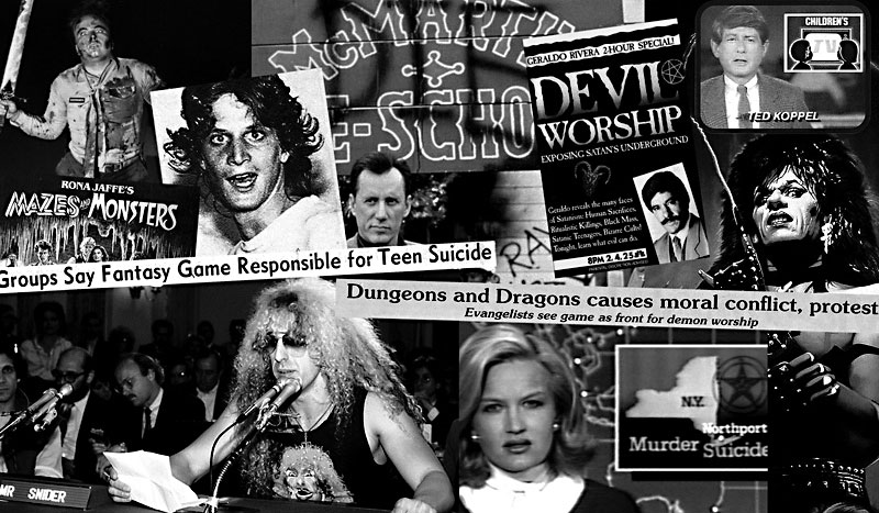 Los primeros en ser señalados fueron los cómics, que en los años cincuenta se convirtieron en el enemigo perfecto para quienes temían la corrupción de la juventud. Se les acusaba de incitar a la violencia y a la delincuencia. Después llegó el turno de la música: gigantes como The Beatles o Black Sabbath fueron acusados de esconder mensajes satánicos o subliminales en sus canciones, y durante los años ochenta, en plena ola del pánico satánico, el heavy metal fue responsabilizado de suicidios juveniles y de fomentar el culto al demonio. El caso más «sonado» ocurrió en 1990, cuando la banda Judas Priest fue llevada a juicio en Nevada tras el suicidio de dos jóvenes, acusada de inducirlos con mensajes ocultos al revés.