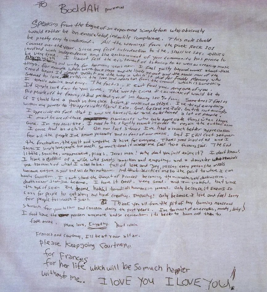 Disponible en: https://kurtcobain.com/kurt-cobains-suicide-note/ - Meixatech. Cobain Images / Documentation. Publicación en meixatech.com.