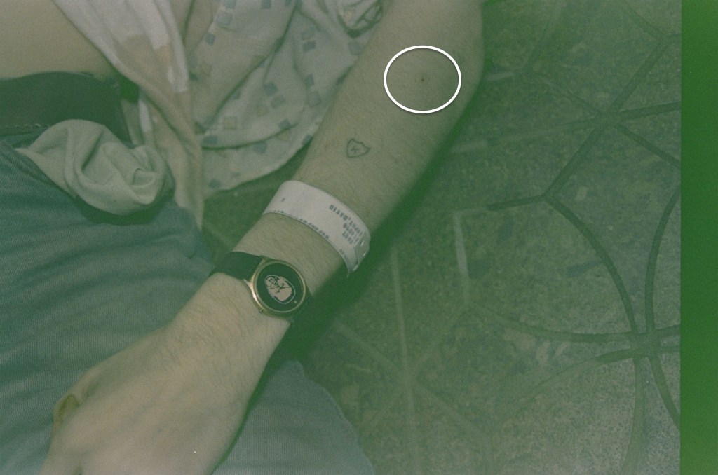 Por eso resulta llamativo que esta punción concreta aparezca en el antebrazo izquierdo, aunque en su día la explicación oficial fue una «abrasión rojo-marrón dentro de una cicatriz ovalada”.